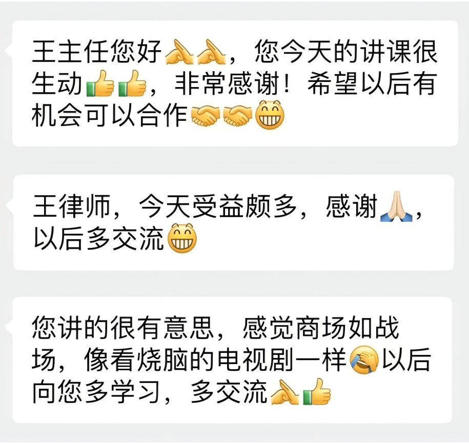 王律师的讲座不仅为在场律师提供了实用的法律知识和策略,也促进了行业内的交流与合作,受到了与会者的一致好评。