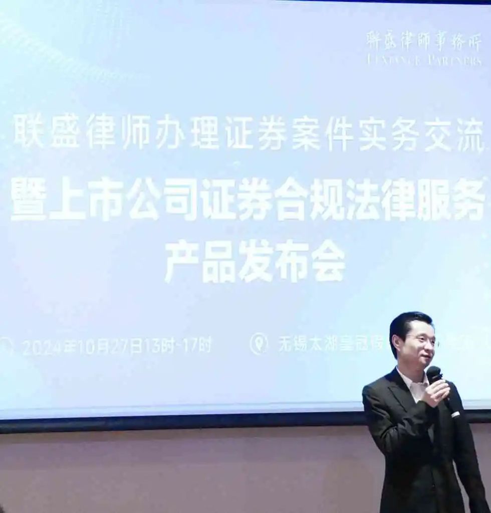 2024年10月27日,联盛律师事务所王强律师团队于无锡太湖皇冠假日酒店隆重举办的“证券案件实务交流暨上市公司证券合规法律服务产品发布会”顺利闭幕。此次活动不仅带来了关于证券案件实务的深入交流,更推出了一项为上市公司量身打造的专业合规服务产品,以切实行动助力企业在日益严格的监管环境中稳健前行。