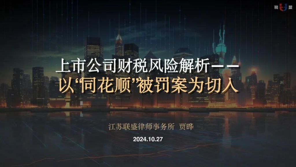 联盛律师高级合伙人、税盟江苏盟友会副会长、股权架构师、税务筹划师贾晔律师分享了一个典型的“同花顺”财税合规案例。她从风险识别出发,讲述了财税合规管理对上市公司长远发展的重要性,并通过详尽的分析为企业提供了预防措施。这一环节让在场的法律、企业人员深有启发,也在交流中深刻意识到合规管理应当是公司管理的基石。